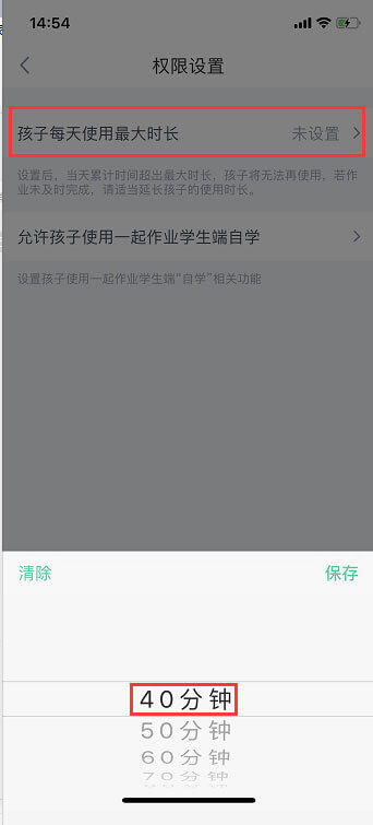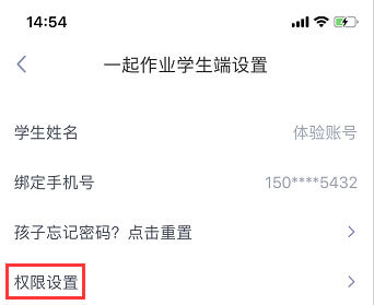 操作路径:打开最新版一起学,点击“我的”→“学生端设置”→选择“权限设置”→设置“孩子每天使用最大时长”
