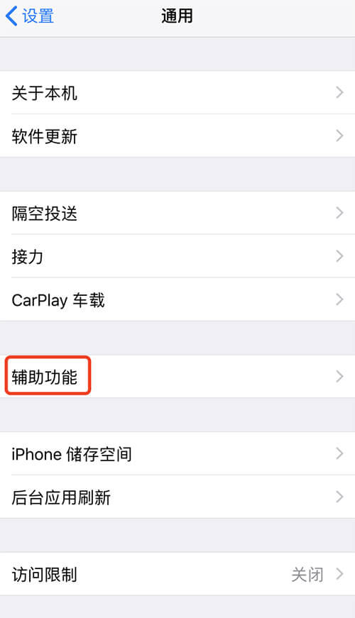 第1步:打开“设置”→“通用”→打开“辅助功能”;