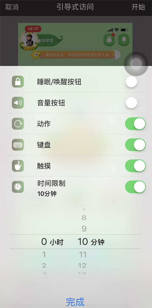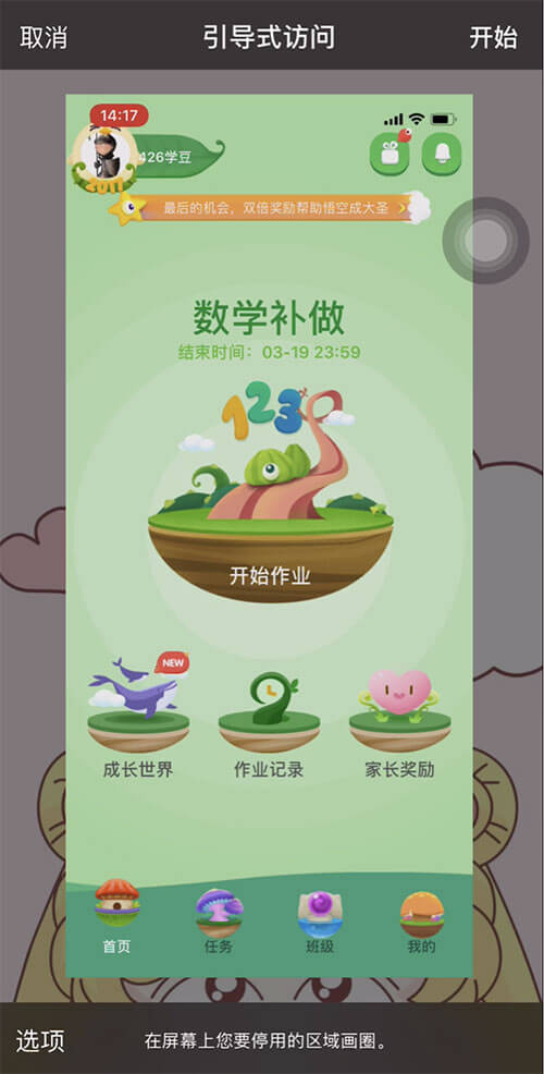 第2步:打开孩子需要使用的学习软件,连续点击主屏幕按钮3次,即可进入引导式访问模式;