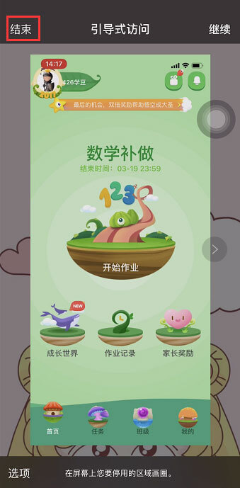 第3步:孩子完成作业后,家长点击左上角的结束即可。