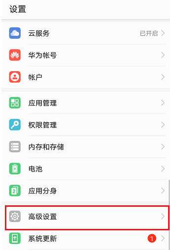 第2步:进去手机设置界面之后,下拉找到高级设置,如下图所示: