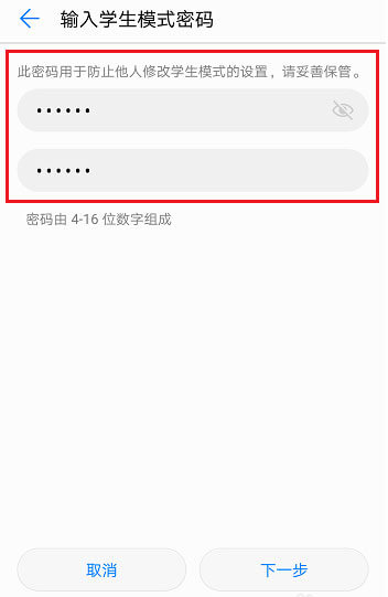 第5步:开启学生模式需要设置密码,防止孩子自己直接切换到正常模式,需要输入密码,才能进去学生模式设置界面,如下图所示: