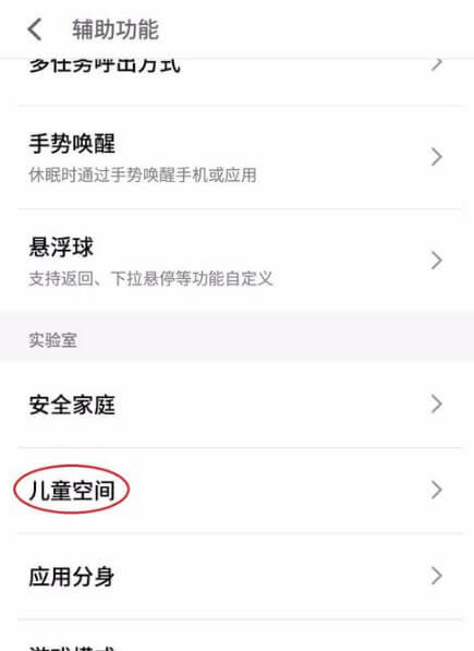 第1步:进入“设置”,点击“辅助功能”,开启“儿童空间”;