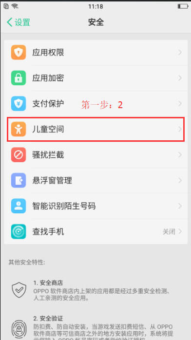 第1步:进入“设置”,点击“安全”,开启“儿童空间”;