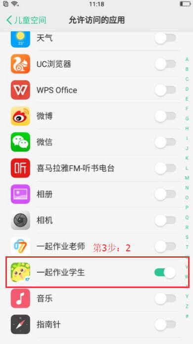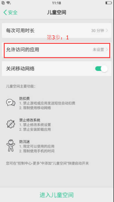 第3步:通过设置“允许访问的应用“,让其他的应用不能显示,避免小孩子乱。