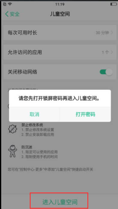 第3步:孩子做完作业,输入密码,退出“儿童模式”。